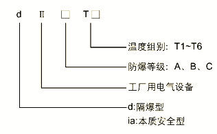 可用于含有爆炸性氣體混合物的環(huán)境,且其爆炸等級(jí)不高于II類B級(jí)(包括II類A級(jí)II類B級(jí)),自燃溫度不低于T4(包括T1、T2、T3、T4)的場(chǎng)所。
